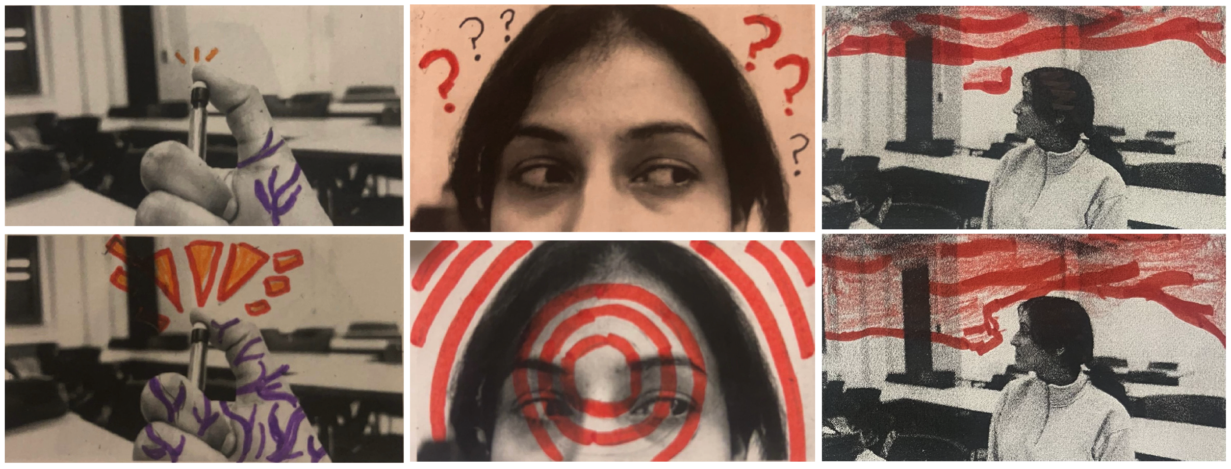 Transform your printed black-and-white frame grids into a mixed-media animation sequence by applying physical interventions such as drawing, collage, painting, and texture.