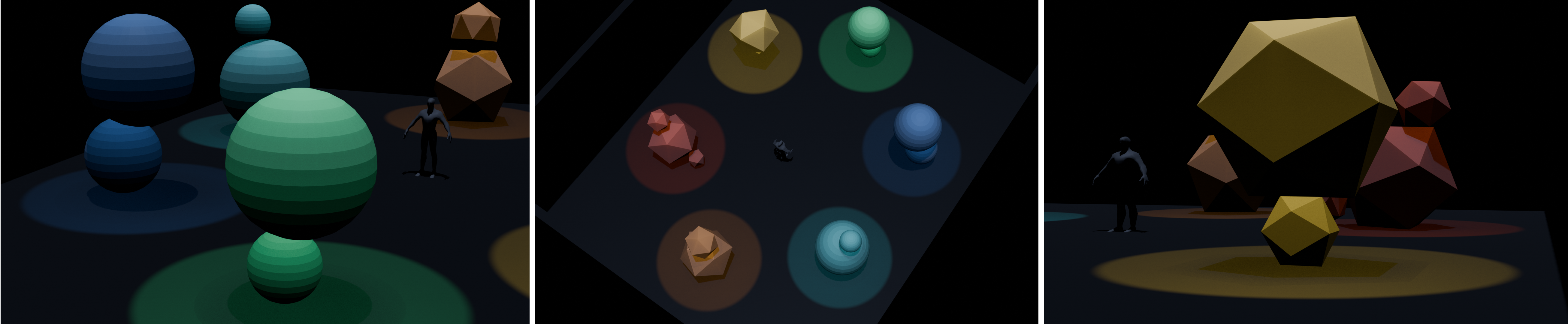 Reveal shifts in light intensity, colour, and spatial sound relationships
