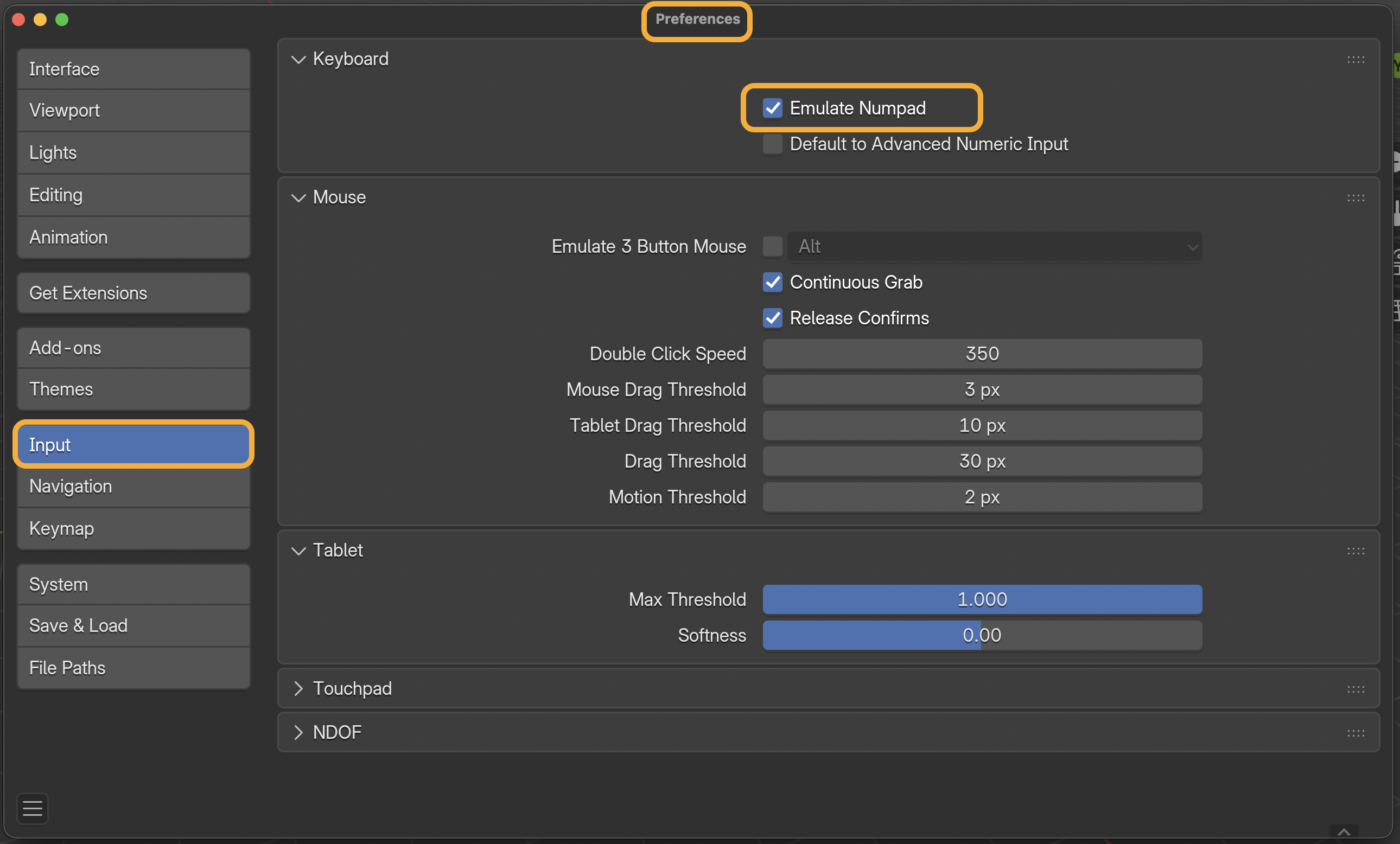 Open the Input tab and enable Emulate Numpad.