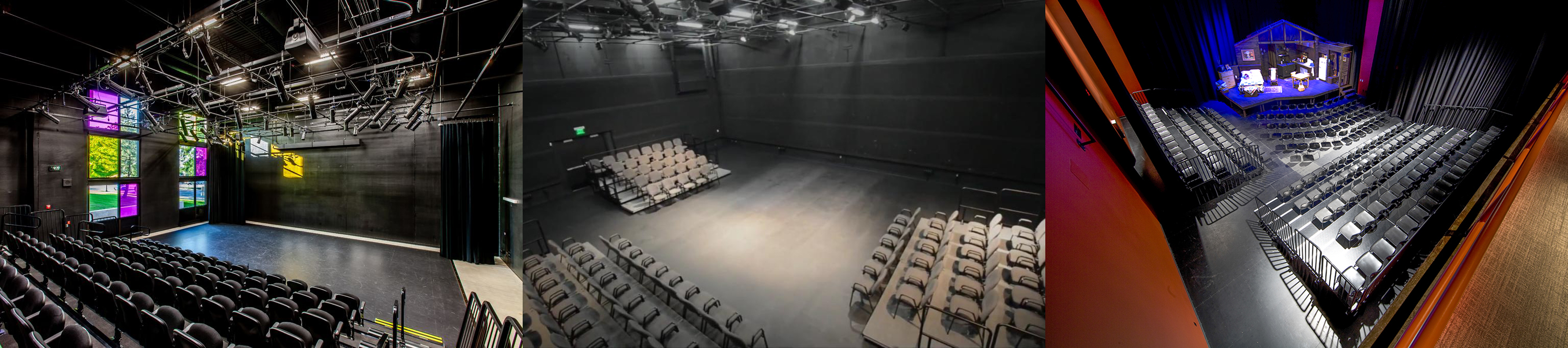 Clear relationship between audience, stage, objects, and entrances.