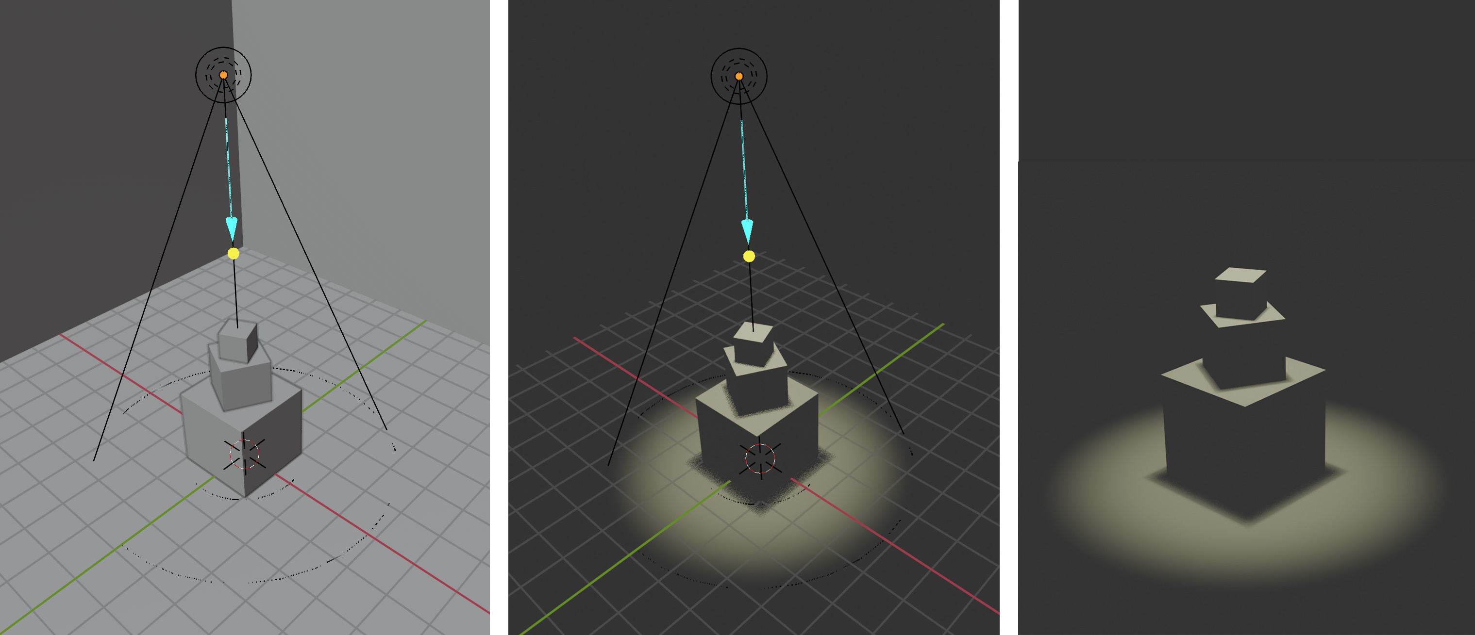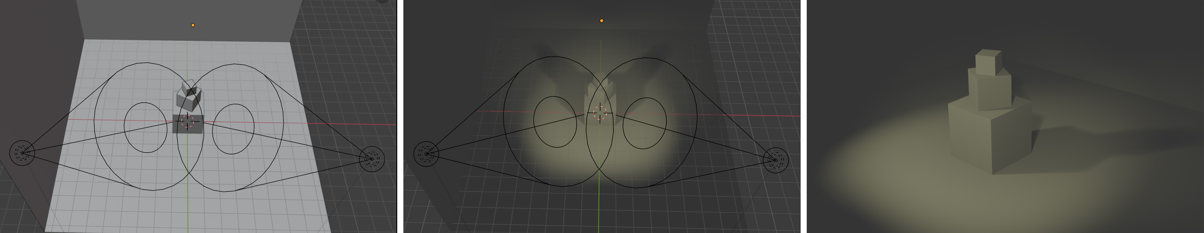 Renders clearly communicate lighting differences from multiple viewpoints.