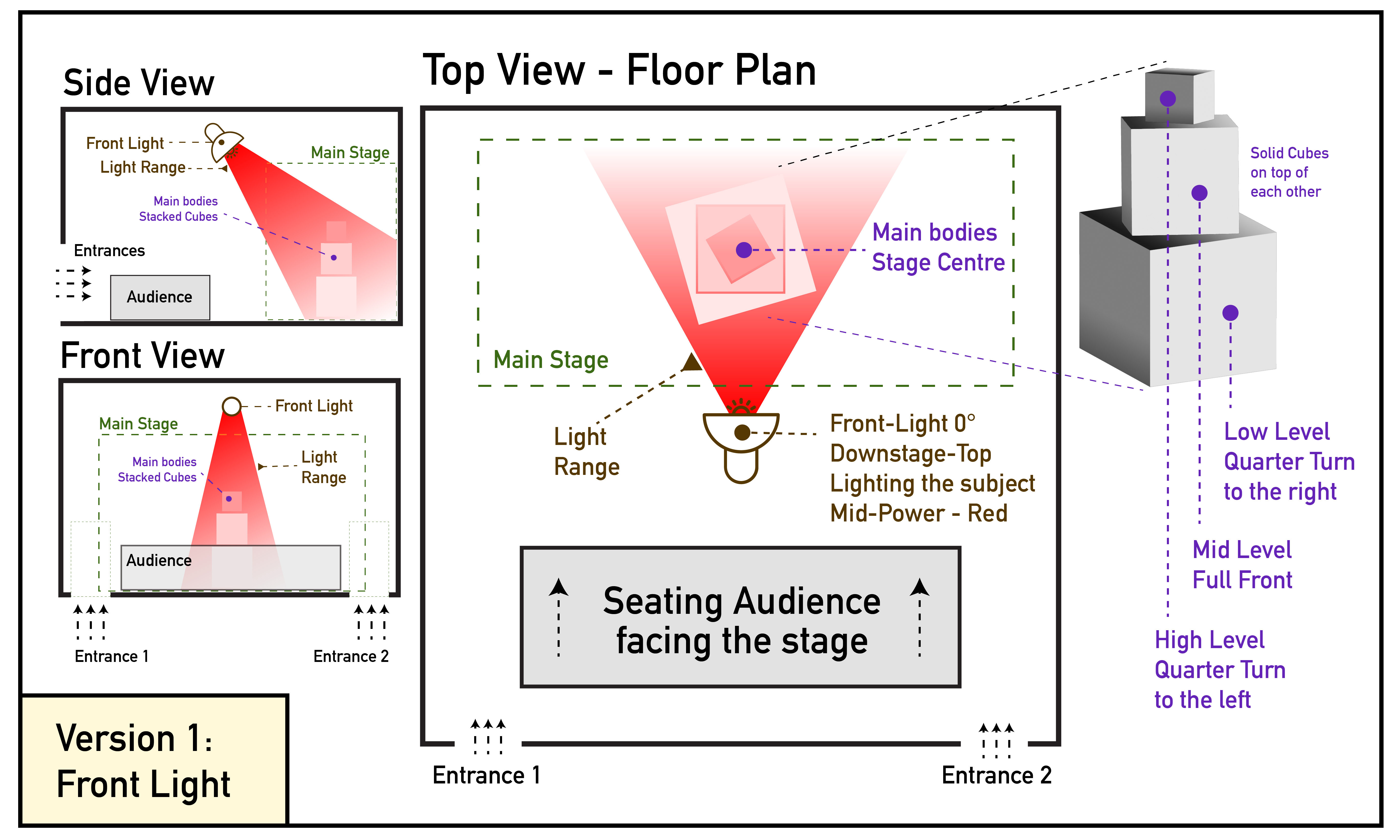 This activity focuses on how lighting position, direction, intensity, and colour reshape space without moving objects, the audience, or the stage layout.