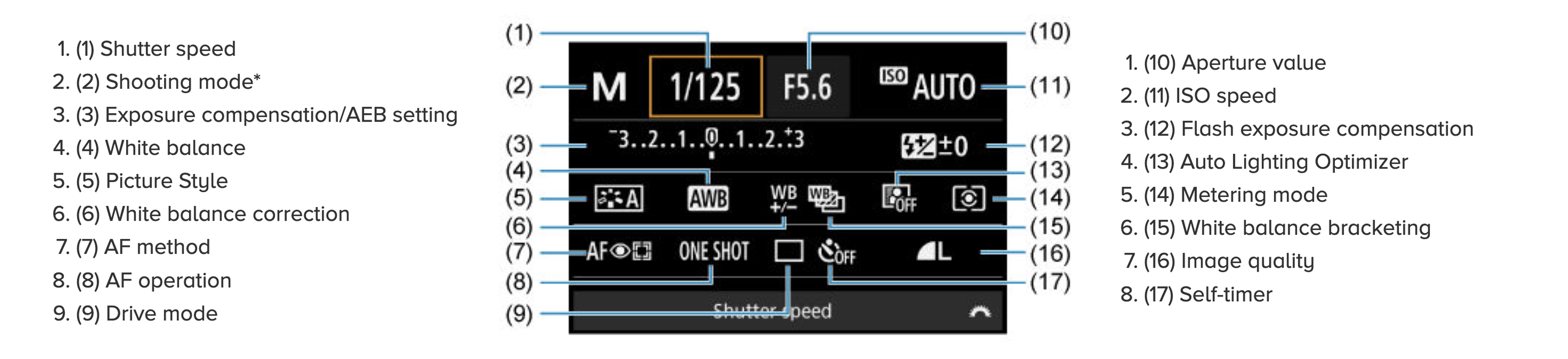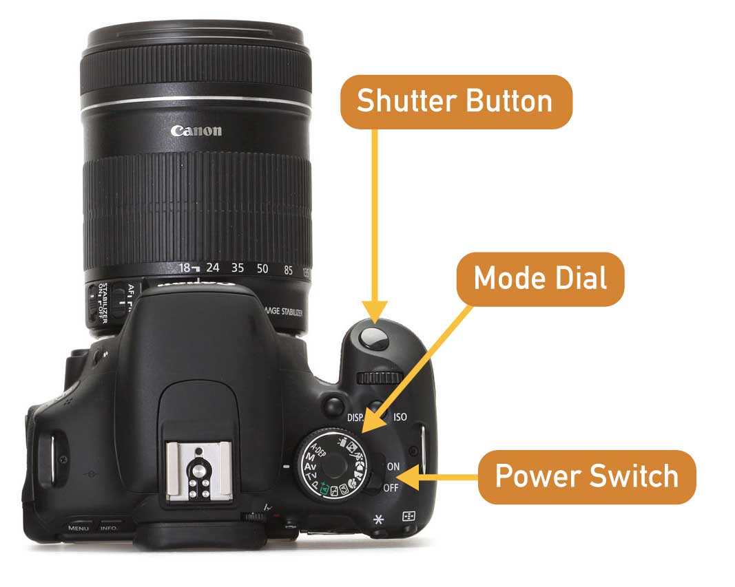 Selects the camera’s shooting mode (Manual, Aperture Priority, etc.). We will review these modes later.