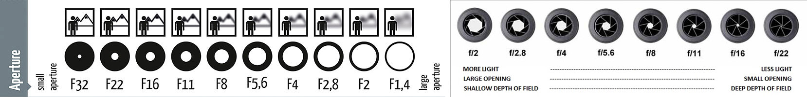 Each aperture (above) represents a halving or doubling of the volume of light: