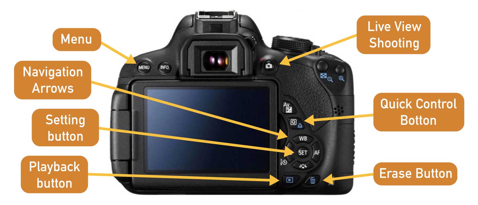 First, become familiar with the main camera buttons used to navigate menus and playback images.