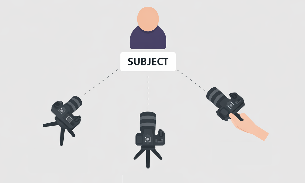 Set and maintain manual mode, applying aperture, shutter speed, ISO, and camera placement to maintain consistent exposure across a multi-camera setup